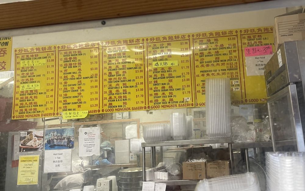 Introducing the menu at Good Mong Kok Bakery, a renowned Cantonese bakery known for its delicious dim sum offerings. Located in San Francisco, this bakery offers a wide range of traditional Chinese pastries and savory dishes. Highlights include the shark fin dumplings, coconut buns, and siew mai. Customers rave about the value for money and the quality of the dim sum items. Whether you're craving shrimp dumplings or BBQ pork buns, Good Mong Kok Bakery has something for everyone. With a mix of sweet and savory options, this bakery is perfect for breakfast, lunch, or a quick snack. Don't miss out on their turnip cake, baked pineapple bun, and pork hash. Experience the authentic flavors of Cantonese cuisine at Good Mong Kok Bakery.